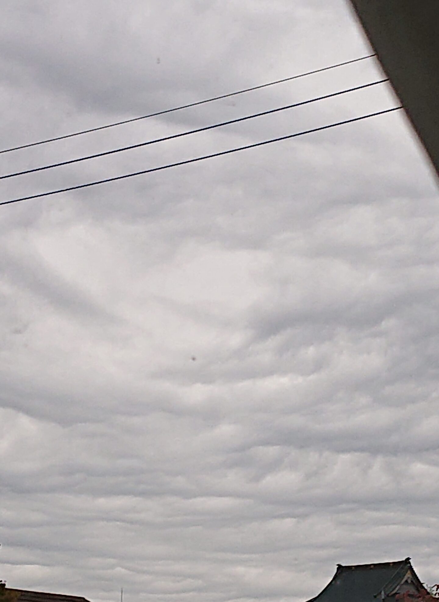 数分で雲の形も色も変わってしまいましたが、なんか織られたように、波打ってる感じ。曇り空にしては興味深い状態でした。