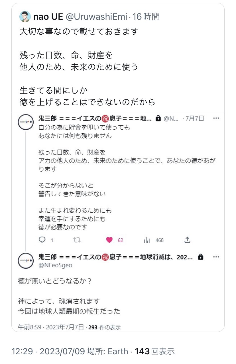 信者は相変わらずBOTツイートで、英語も使わずに世界の支配者層へとかやってるけど。だから、英語使わないでどうやってあいつらに届けるんだ?対等な立ち位置でやらない限り相手になんて届かない。上から目線でやってるから反発して殴り合いになるんだよ。外交ってそういうもんでしょ。