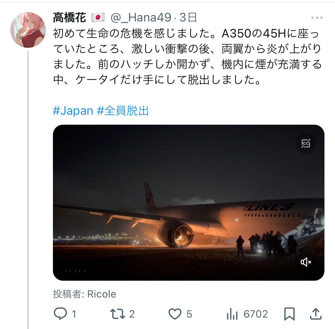 地震で動けないはずなのに、飛行機に乗っていた。