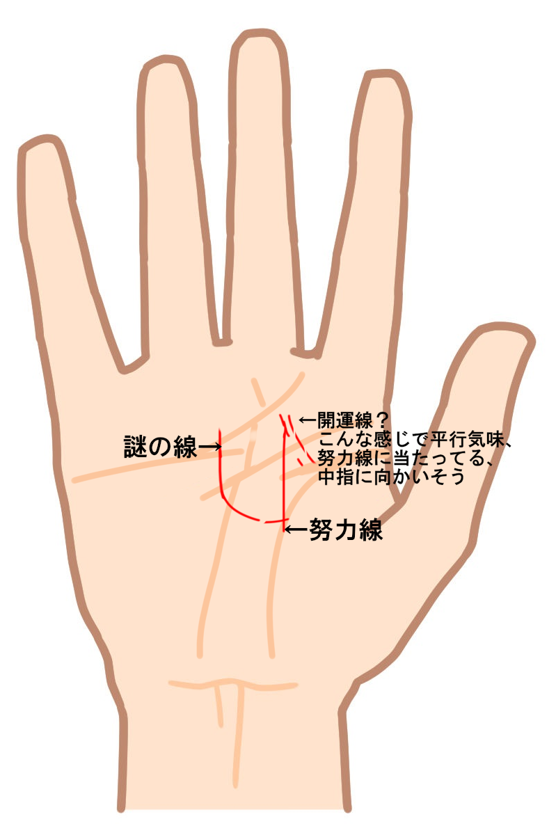 努力線も普通に薄っすら程度だったのが、今はよく見ると長い線に近いです。既存の運命自体を塗り替えたのかもしれない。