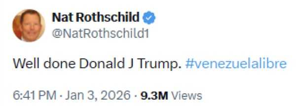 ベネズエラも茶番なんですけど、ロスチャイルド配下のトランプに労いの言葉を言ってるこやつ。